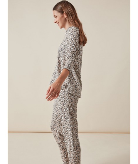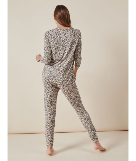Pijama de invierno, con camiseta de punto estampada de Animal print, detalle de encaje en escote.